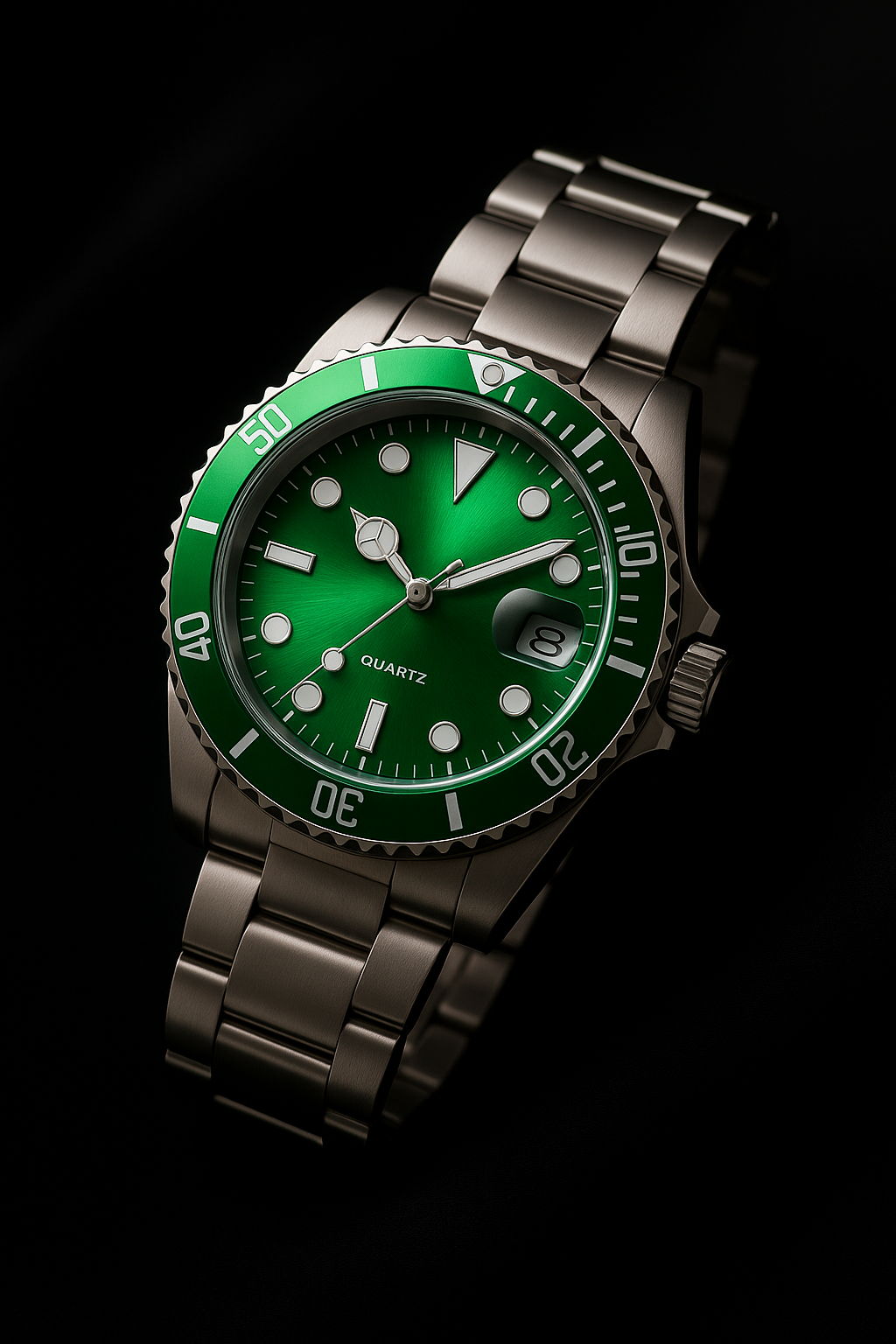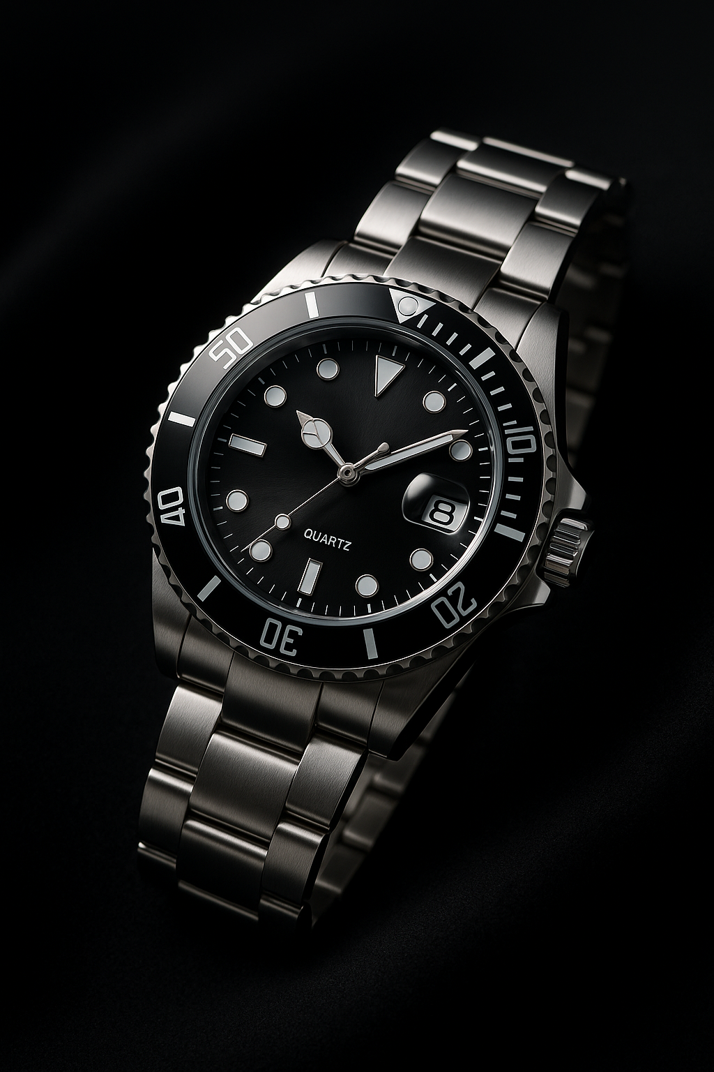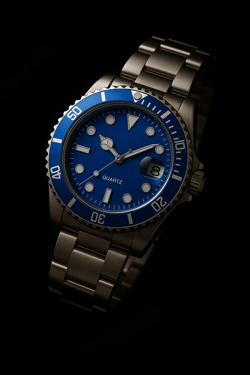 Su esfera profunda, su bisel contundente y su brazalete de acero sólido evocan la estética de los relojes nacidos para dominar las profundidades. No necesita brillos exagerados ni ornamentos vacíos: su poder está en la presencia.
